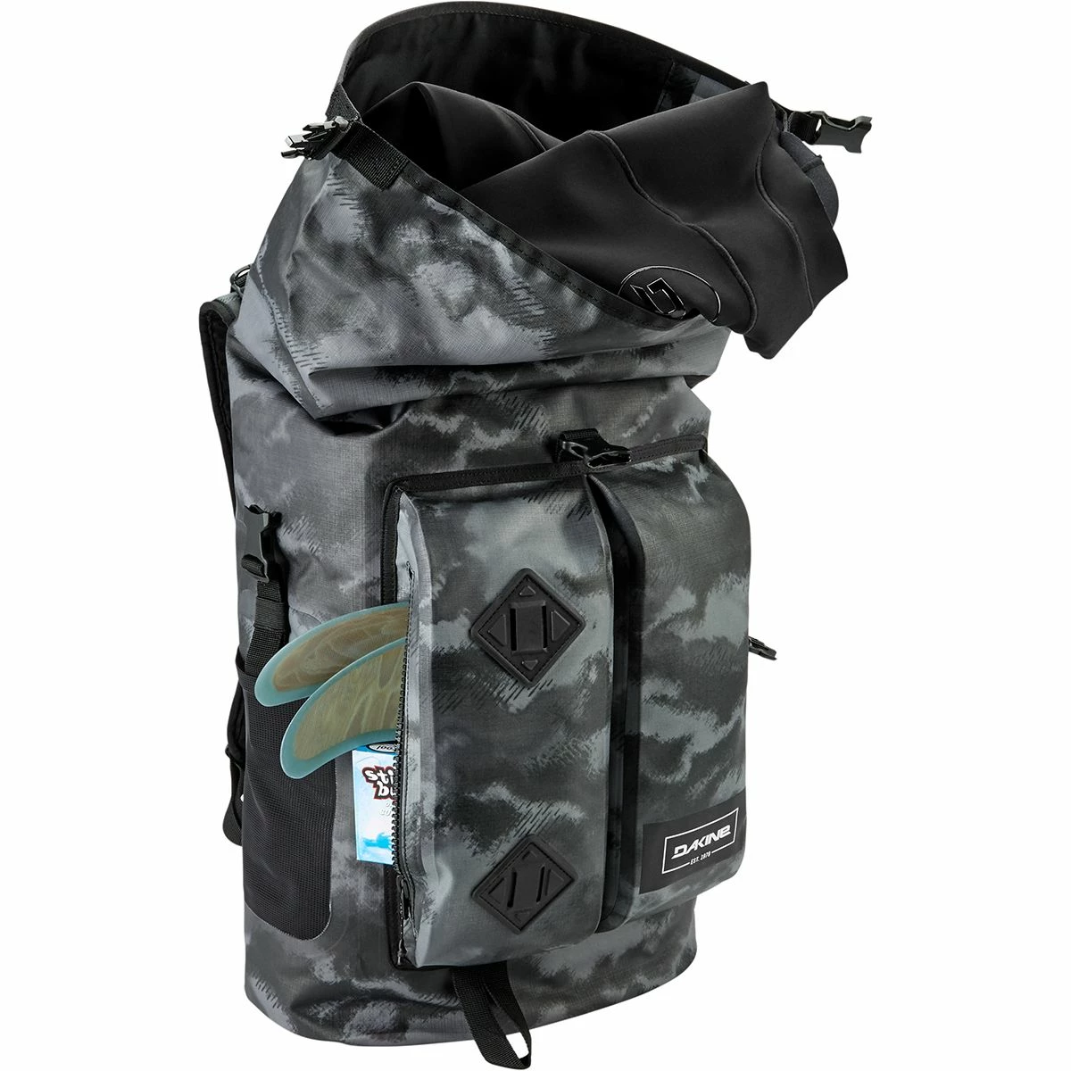 Your surf vacation to Southern California got a whole lot more convenient with the Dakine Cyclone II 36L Dry Backpack. Its roll top closure and welded construction make it totally waterproof to keep your gear protected when you hit the beach. PU coated zippers on the outside two pockets offer water-resistance to keep your smaller items protected if you aren’t planning on submerging the bag. In addition to protection from moisture, the Cyclone II comes equipped with plenty of thoughtful details. A handy two-way purge valve inflates the bag to make it float or compresses the pack to save space when you’re traveling and an integrated board carrying system makes it easier to carry your surf board to the beach and a breathable back panel keeps you comfortable when the walk is a long one. Finally, a laptop sleeve keeps your computer secure and away from your other things to help ease your travel days on your next surf trip.